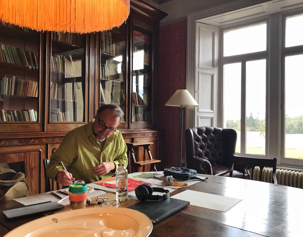 Working in the library at my residency at the Tyrone Guthrie Centre in the Spring of 2018.